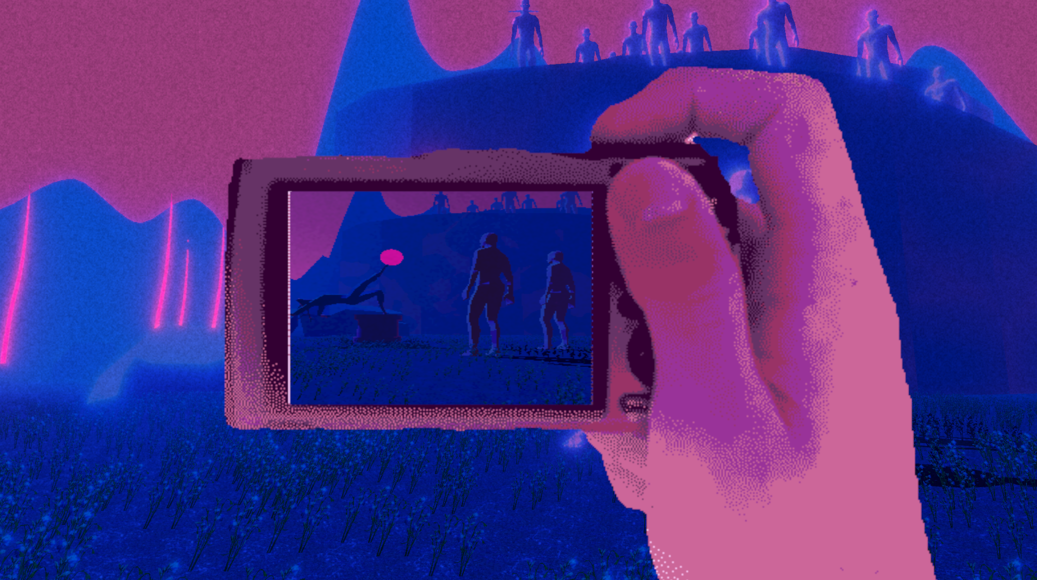 in bluedrums&purplesnares you play as the fan of the elusive DJ "DeerHead," who has yet again escaped the throws of fame just before an anticipated mountain-top set to hide out and live his life in peace. In the meantime he has scattered drum loops of his next hit all throughout the valley, waiting for someone with a keep observant eye to snatch them up and save the rave.